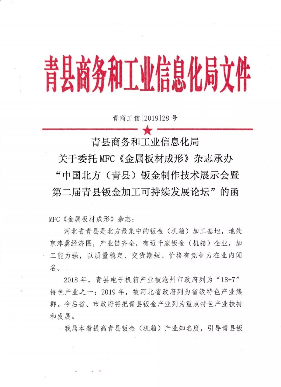 10月25日将“中国北方(青县)钣金制作技术展示会”,目前有30多家钣金装备企业参与,共同为繁荣与服务北方(青县)钣金加工而努力,共同打造北方(青县)钣金加工产业链而奋斗。