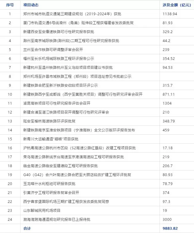 近日,全国多地发布最新一批重大工程项目涉及7条郑州市城市轨道交通线,12条铁路、5条公路还有2大水利工程,2个民用机场项目以及约3000亿的跨海通道超级工程,总投资规模高达9800+亿元