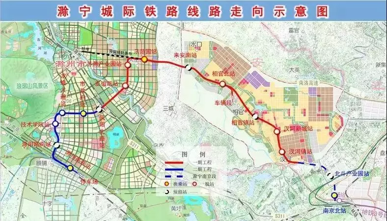 项目概况丨线路起自滁州市高铁滁州站,经城南新区、经开区、苏滁园,止于凤阳北路站。设滁州高铁站、滁阳路南站(预留)、技术学院站、龙蟠大道站、市政府站、凤阳北路站(预留)等6座车站。