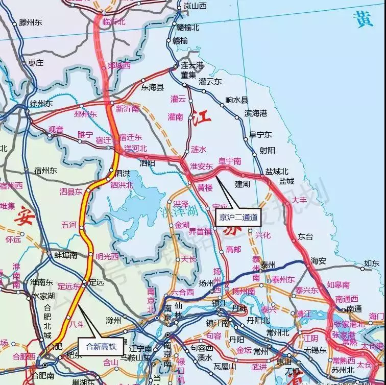 合新高铁及京沪二通道江苏段示意图,此图仅为初步设计方案,非最终走向)