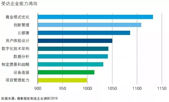 德勤调查发现,中国工业企业智能制造五大部署重点依次为:数字化工厂(63%)、设备及用户价值深挖(62%)、工业物联网(48%)、重构商业模式(36%)以及人工智能(21%)。