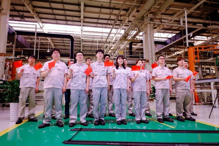 “我爱你,中国!”来自华科大无锡研究院、戴卡轮毂、上汽大通、中车新能源、一汽锡柴、格非电子、透平叶片等制造业的员工们在工作场地深情演绎了现代智能制造人的精气神;来自惠山区制造业的省市劳模、省“五一”劳动奖、“惠山工匠”获得者们用歌声表达了他们爱岗敬业的信念;来自惠山区软件园的员工、惠山区教育系统的老师、省锡中的学生纷纷参与到快闪中,他们用歌声共同唱出了爱祖国的情怀和为中国智造努力学习、奋进的信心和决心。