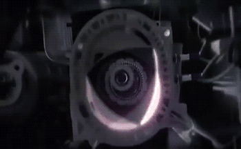 转子发动机壳体的内部空间(或旋轮线室)总是被分成三个工作室。在转子的运动过程中,这三个工作室的容积不停地变动,在摆线形缸体内相继完成进气、压缩、燃烧和排气四个过程。每个过程都是在摆线形缸体中的不同位置进行,这明显区别于往复式发动机。