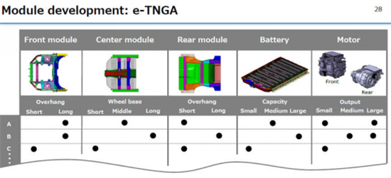 总体来说,e-TNGA和TNGA在思想上基本是统一的,他们都是面向全球化,都是为了追求高效、节约成本而存在的。但因为技术要求不同,所能用到的最佳解决方案也不同,其中最大的区别就在于模块化平台的搭建。