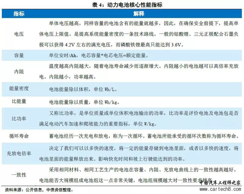 动力电池的核心技术指标包括能量、能量密度、充放电倍率、循环寿命、安全性、一致性、可靠性等多项指标。其中,在整车重量给定、正常工况行驶的情况下,主要由电池的能量决定新能源汽车的续航里程。电池能量(Wh)等于能量密度(Wh/L)乘以电池体积(L),或者比能量(Wh/kg)乘以电池质量(kg)。由于新能源汽车生产商在某特定车型中要严格控制电池在车身中所占空间,因此在动力电池体积一定的情况下,能量密度越高的电芯,电池的能量越大,续航里程也就越长。因此,国家从2017年开始将动力电池能量密度[电芯的能量密度称为单体能量密度,在电芯PACK成组后,整体的能量密度会有明显下降,该能量密度称为系统能量密度,国家政策考核的为系统能量密度]指标纳入补贴考核范围,用以推动动力新能源汽车及电池行业技术发展。综上所述,能量密度是动力电池设计时考量的最重要指标。