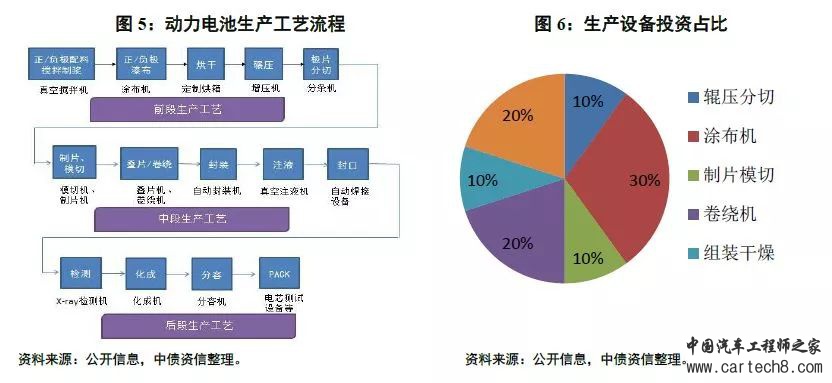 锂离子电池的结构主要包括正极、负极、电解液、隔膜以及外壳。生产流程一般可以分为前段、中段和后段三个部分。其中,前段工序包括配料、搅拌、涂布、辊压、分切等,中段工序包括卷绕/叠片、封装、烘干、注液、封口、清洗等,后段主要为化成、分容、PACK等。