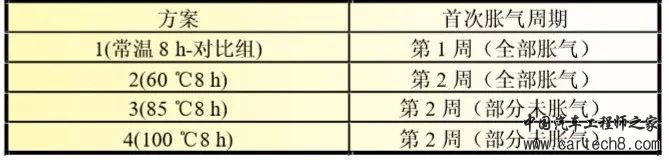 表二 注液后不同静置温度电池首次胀气对应的周期表