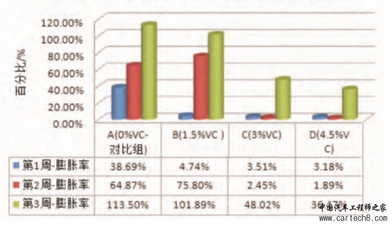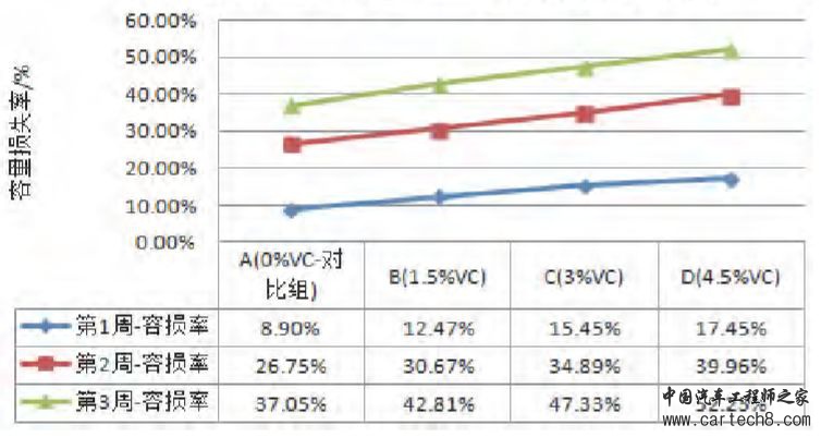 2.1 不同含量 VC 添加剂改进型电解液电池的实验