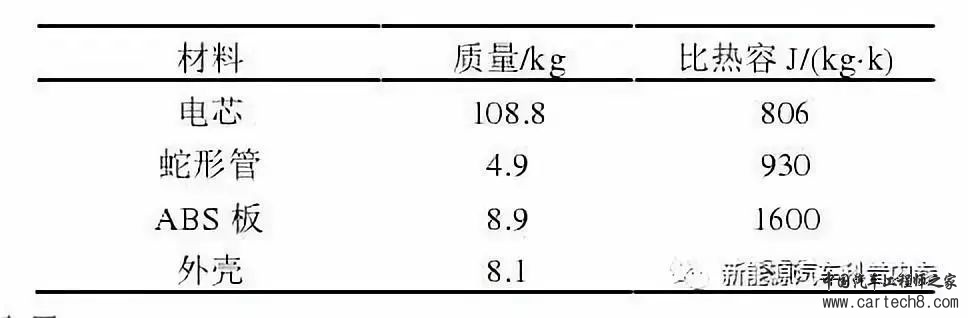 热管理系统关心的电池参数包括:标称电压和电压范围,最大持续工作电流,能量密度,功率密度,电池内阻(新电池和寿命终了阶段)、热特性参数(等效比热容、等效热传导系数)