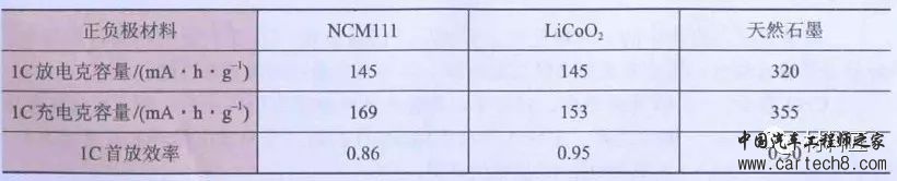 举例来说:LiCoO2在4.2~3.0V电压范围,25℃下,首轮充放电效率为95%左右,三元材料首放充放电效率在86%~90%之间。表1为商业NCM111的1C放电前三个充放电循环的质量比容量。