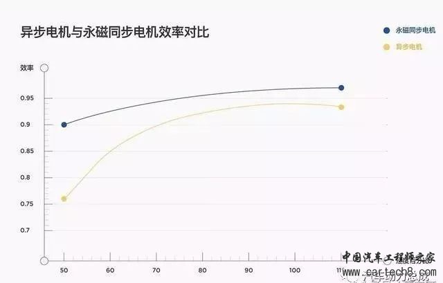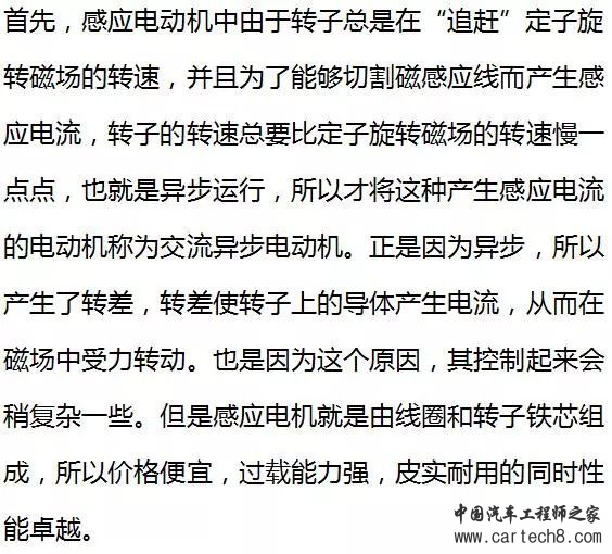 从目前技术优势来看,永磁同步电动机成为主流实至名归。值得注意的是,尽管在重量和体积方面,感应(交流异步)电动机并不占优势,但其转速范围广、成本低、工艺简单、运行可靠耐用。至于重量对续航里程的影响,如果未来电池续航里程大幅增加、感应电机体积优化做得好,或许会更有底气与永磁电机在市场表现上一争高下。