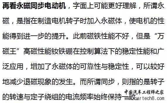 总的来说,永磁同步电机对比感应电机,它们各自都具有明显的优势。不过,目前纯电动车的续航里程势必是一项及其重要的指标,永磁同步电机的高效率能更好地提高续航里程。而且高耐热性、高磁性能钕铁硼永磁体的成功开发以及电力电子元件的进一步发展和改进,使稀土永磁同步电机的发展进一步完善。但就现在的发展趋势看,永磁同步电机似乎前景更好。