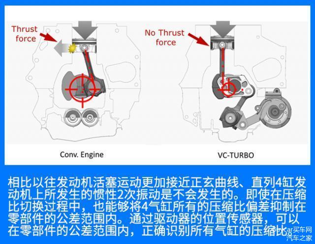 VC-Turbo发动机可以根据发动机扭矩,找到热效率最高的压缩比,所以能够有效的控制爆震现象。