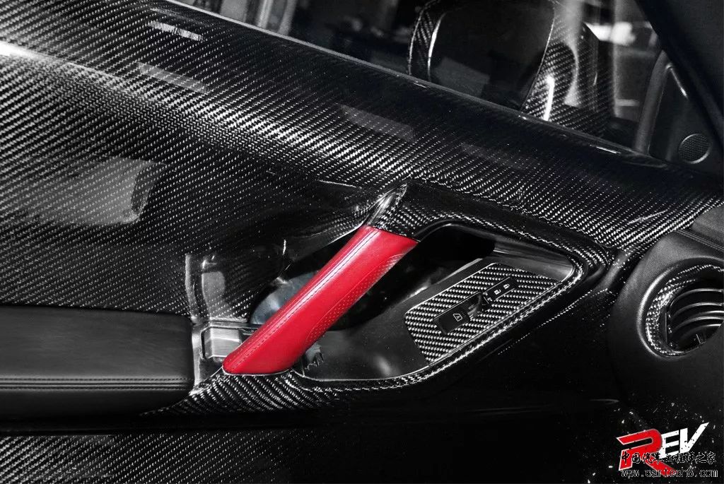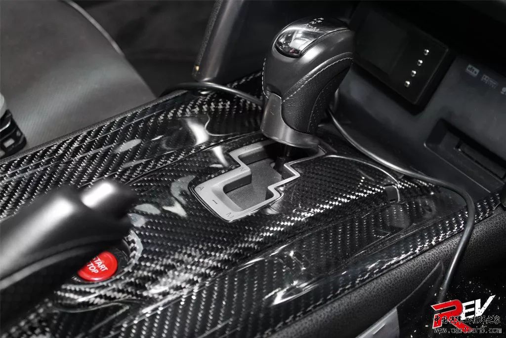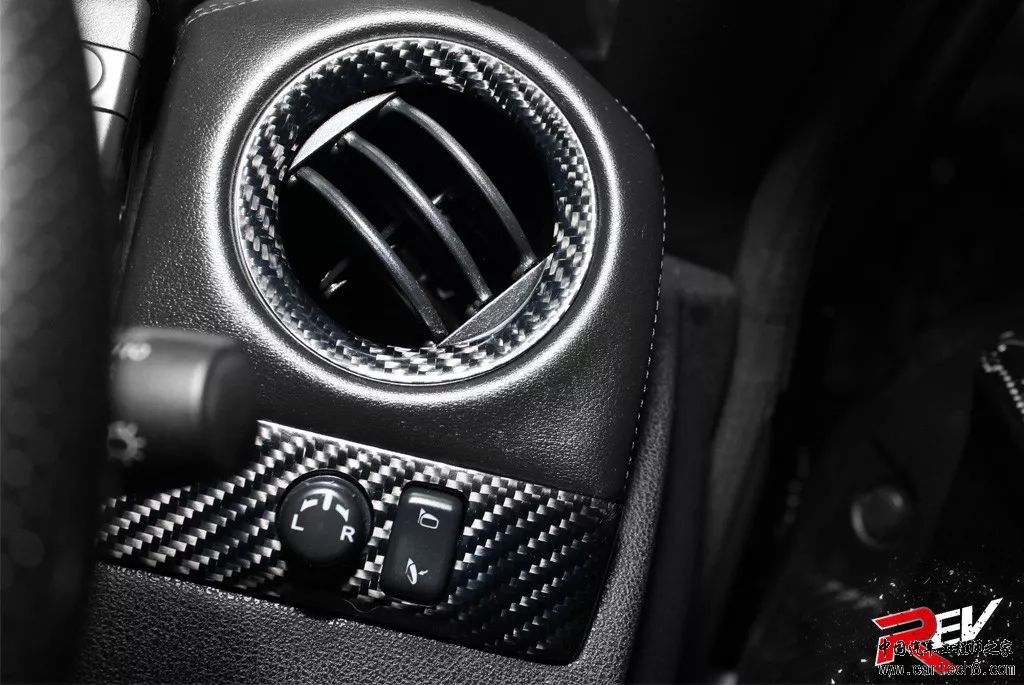 除了外观上的改造,车主在内饰方面也丝毫不含糊;从门板、座椅、仪表板、中控台、门槛甚至到空调出风口等小细节都换成了碳纤维的材质,车主为了追求轻量化真是下够了本啊!