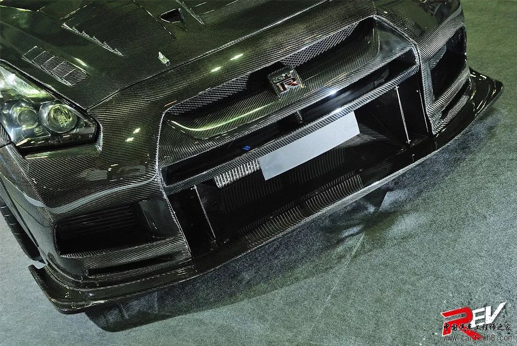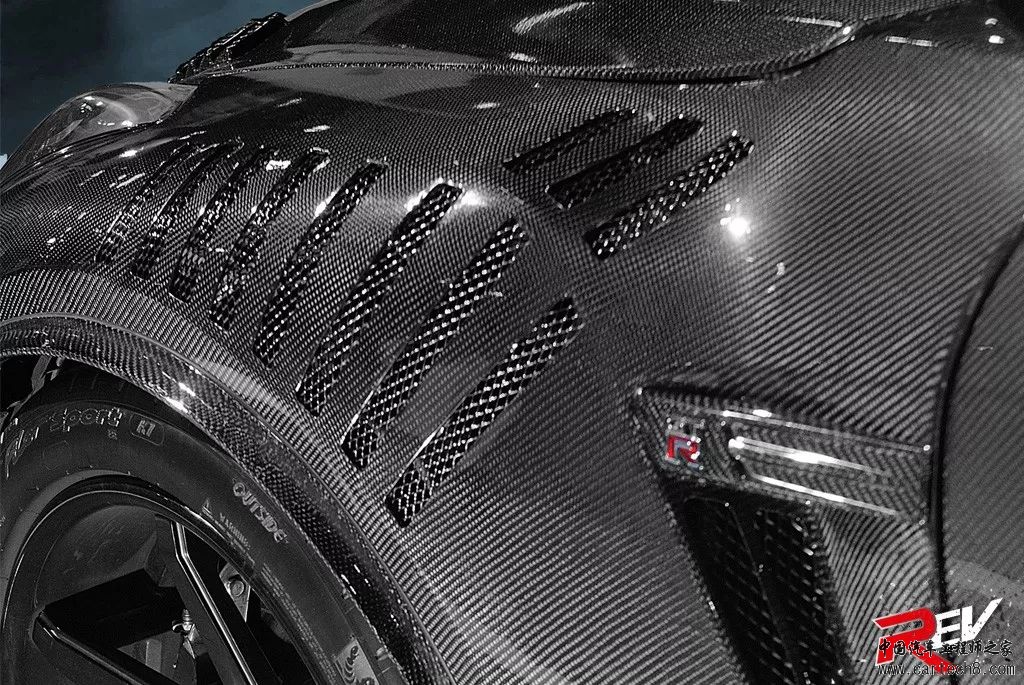 这台GT-R原车身是十分低调的珍珠白配色,但它却遇到了一个追求极致个性与轻量化的车主,以致整台车从上到下都被未喷漆的碳纤维材质部件覆盖,高调的展示着碳纤维的华丽纹路。