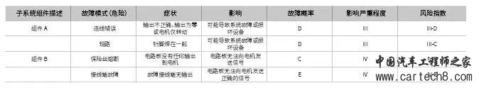 在产品设计中,我们应用称为故障模式和影响分析(FMEA)的过程来定性地识别可能的故障及其对系统的整体影响。FMEA是20世纪40年代末测试军事系统的可靠性工程师开发的,并沿用至今。当识别出可能的故障时,就会详细描述故障并分配相应的概率值、严重程度值以及计算出的总体风险值(概率和严重程度的乘积)。表2显示了一个FMEA表的示例。