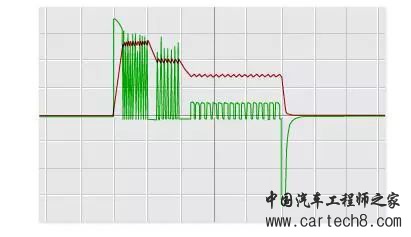 图8. 柴油燃料喷射器的电流和电压曲线表明必须测量电流才能精确地捕获正确的时机
