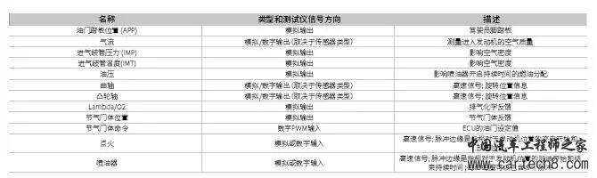 表1. 在开发测试仪时应考虑这些常见的发动机ECU信号。