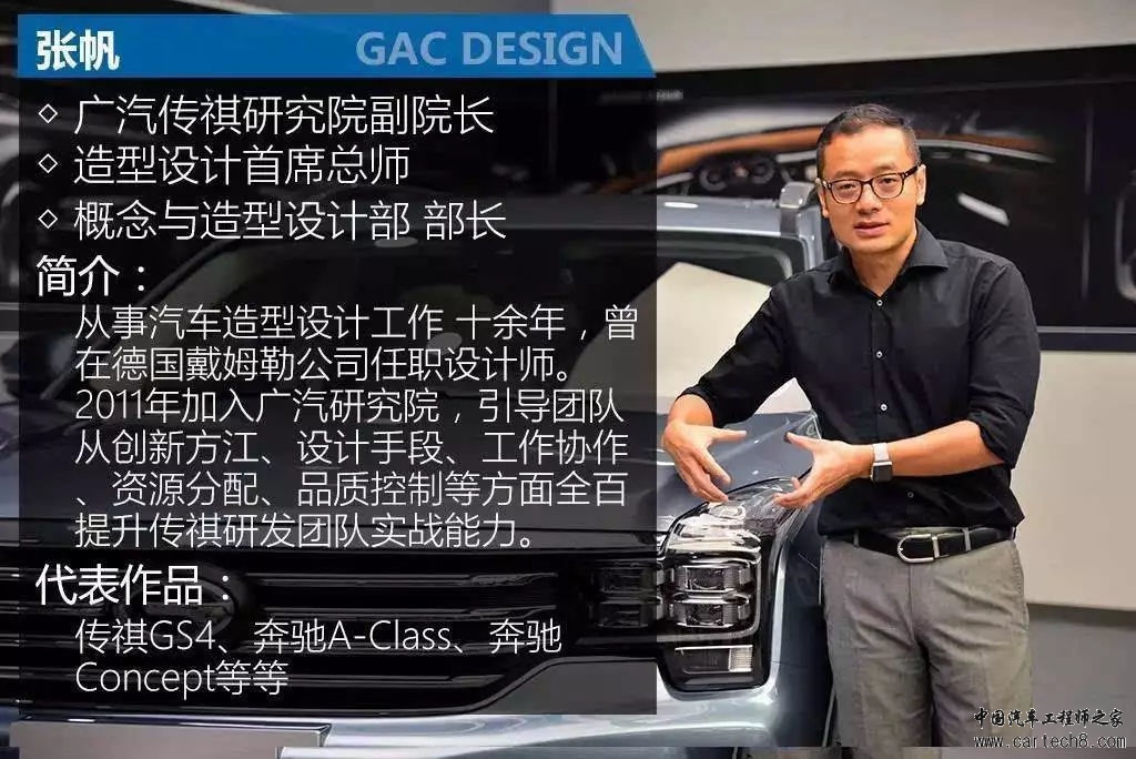 传祺汽车品牌的设计大师:张帆,曾经就是德国奔驰总部的核心员工,也曾经亲参与过A-Class等车型的开发设计。