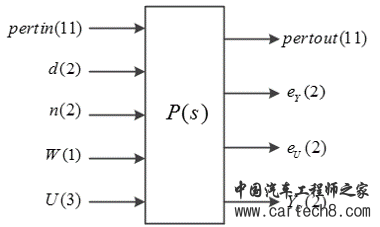 在图5中,P(s)表示由名义模型和加权函数组成的19个输入和17个输出开环系统的传递函数矩阵。用于路径跟踪的4WIS EV的广义系统如图6所示。