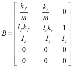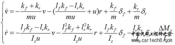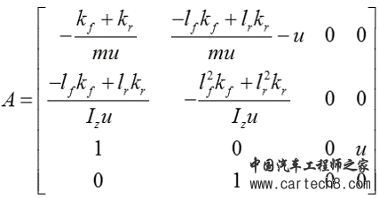结合前面几个方程,4WIS电动汽车路径跟踪的动力学方程可以写成状态空间形式: