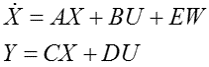 状态向量,控制输入向量和外部输入向量,系数矩阵A,B,C,D和E由下给出: