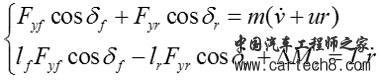 其中v是车辆的侧向速度,r是车辆的横摆角速度,Fyf和Fyr分别是前后的侧向轮胎力。