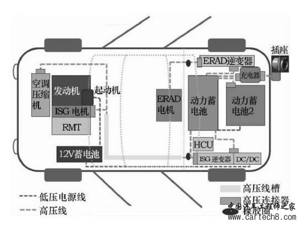 图1 混合动力高压部件布局图
