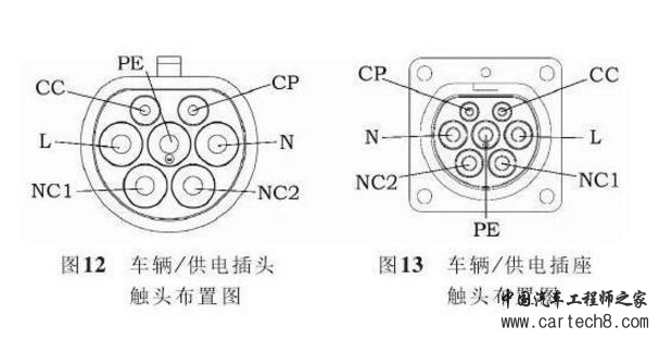 车辆插头和插座的触头布置方式如图12和图13 所示。