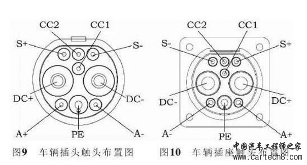 车辆插头和插座的触头布置方式如图9和图10 所示。