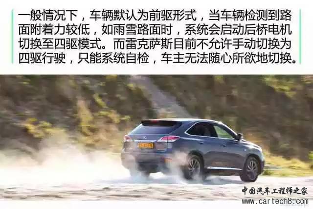 究其原因,还是电池容量“太小”在作怪,如果长时间保持在四驱模式,耗尽电量也就几分钟的事,那么等到真正需要四驱的时候就有点尴尬了。因此,保守的雷克萨斯只能设定为系统自检,最大可能地避免这种情况发生。