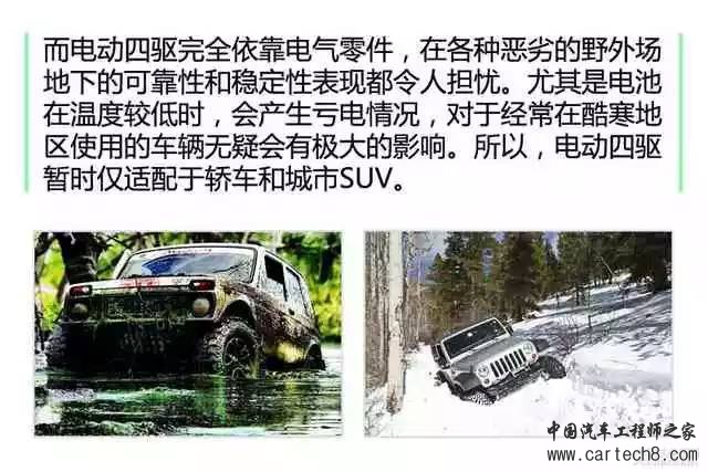 总结:电动四驱不仅能满足家轿和城市SUV的行驶需求,还能为超跑提供前所未有的性能表现,虽然电动四驱在恶劣环境下的表现有待考证,但随着电气零部件技术的持续改进,人们观念的改变,相信未来也会有部分车厂给自己的的“硬派越野车”搭载。