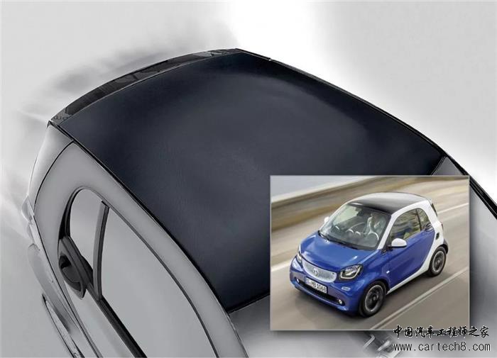 由知名化工企业巴斯夫(BASF)创造的这种材料,算是全球首个采用 A 类蜂窝夹芯结构车身部件,并首次应用于 smart fortwo 的车顶,模块由一个纸蜂窝和两层玻璃纤维毡构成,在强度和抗弯刚度都保持不变的情况下,重量相较于之前的普通铁材车顶减轻了整整30%。