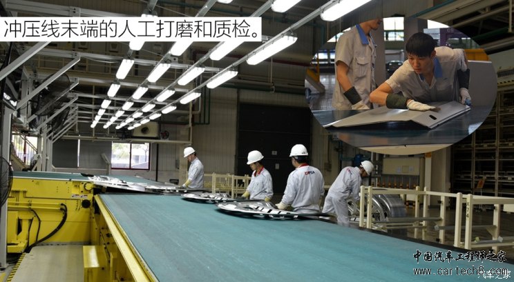 冲压线出来的零部件需要训练有素的员工在生产线的末端对其打磨和检查,将有质量缺陷的筛选出来。当然,经过这一环节后还会有一定比例的精细化抽检,哪怕是0.1mm的误差也会被发现。