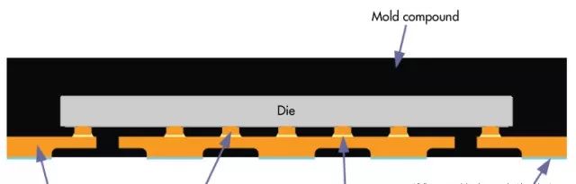 FCQFN 封装在芯片的表面采用了多排铜凸点粘接至引线框架