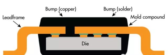 这些封装在芯片的表面采用了多排铜凸点粘接至引线框架。