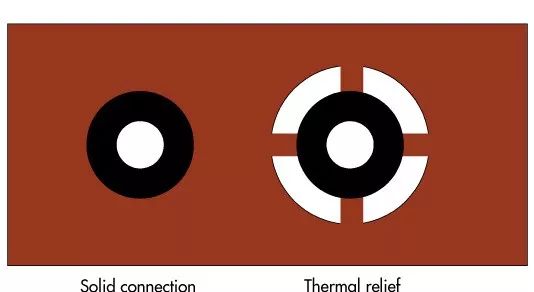 请注意,热通孔不得使用热风焊盘,它们必须直接连接至铜区域。