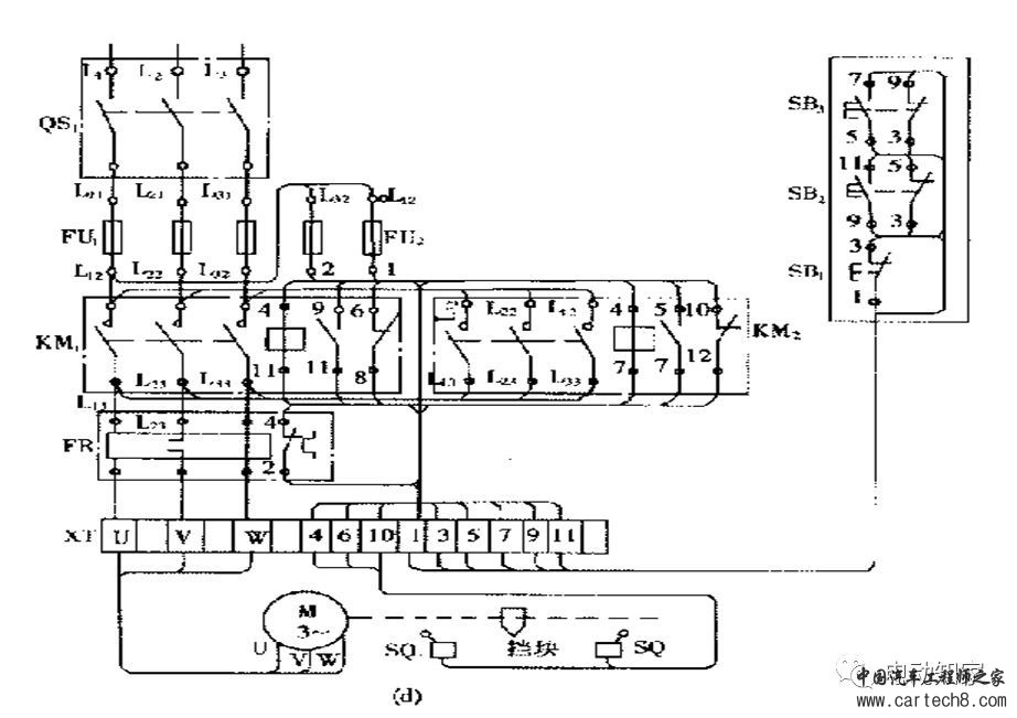 3)工作步调相近,功率相近的部件尽量共用一套接触器和熔断器,减少接触器熔断器数量,以最简单可靠的电路设计完成功能的实现,减少故障率;