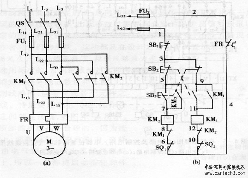 ①短路保护 熔断器FU是作为主电路短路保护用的,但达不到过载保护的目的。这是因熔断器的规格是根据电动机的启动电流大小作适当选择的,另一方面熔断器的保护特性分散性很大,即使是同一种规格的熔断器,其特性曲线也往往很不相同。