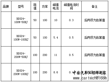 经过预充电电阻上的峰值电流为继电器闭合瞬间电流: Us/R,在选用预充电电阻时峰值电流按此选取,峰值电流时间可按1τ选取,取符合上述两个条件的最小电阻、功率的预充电电阻。例如:Us=360V,R=50Ω,C=3300uF,则