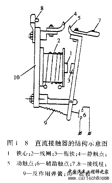 电磁式继电器是使用最多的一种继电器,其基本结构和动作原理与接触器大致相同。但继电器是用于切换小电流的控制和保护电器,其触点种类和数量较多,体积较小,动作灵敏,无需灭弧装置。