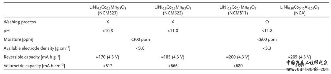 图5 NCM523、NCM622、NCM811和NCA理化性质[7]