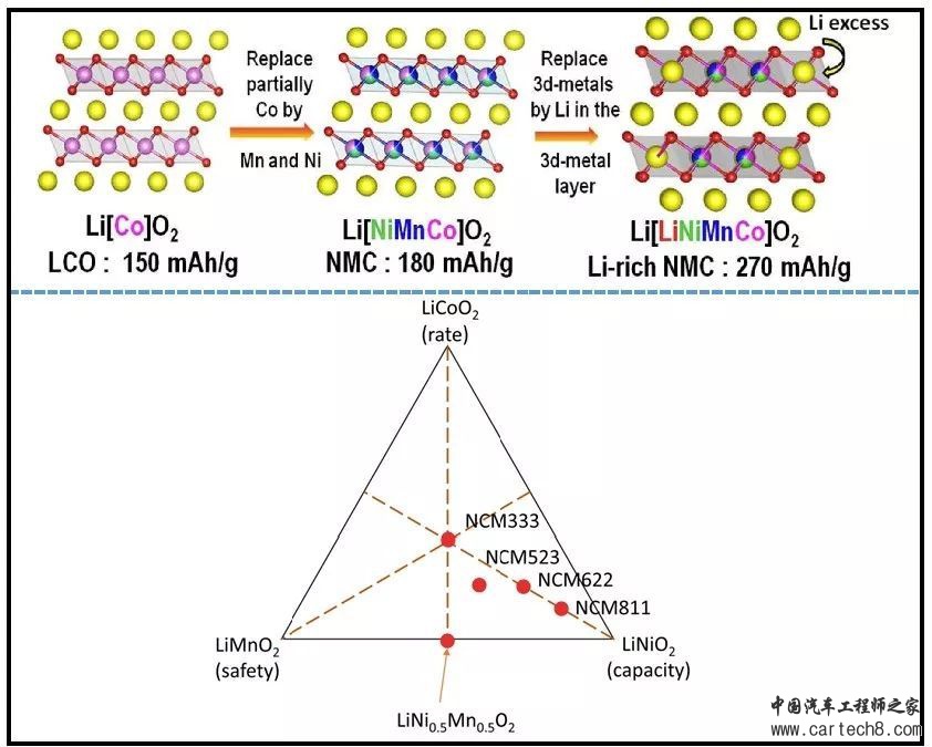 图4 NCM结构图和LiCoO2/LiMnO2/LiNiO2二元相图[5-6]
