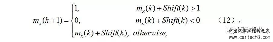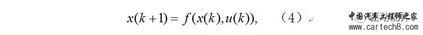 这里的u(k)是包含一组控制变量的矢量,如驾驶系统命令的改变和辅助电机理想速度的增量;x(k)是系统的状态矢量,如系统的工作模式(单电机模式和双电机模式)和电机的速比。
