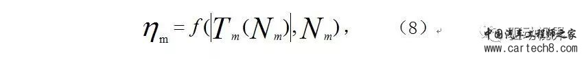考虑到再生制动,在这里我们假设:当电机的输出转矩是负的时,效率是相同的。输出正力矩的值是和负转矩值的绝对值相同的。电机效率 可以被表示为:
