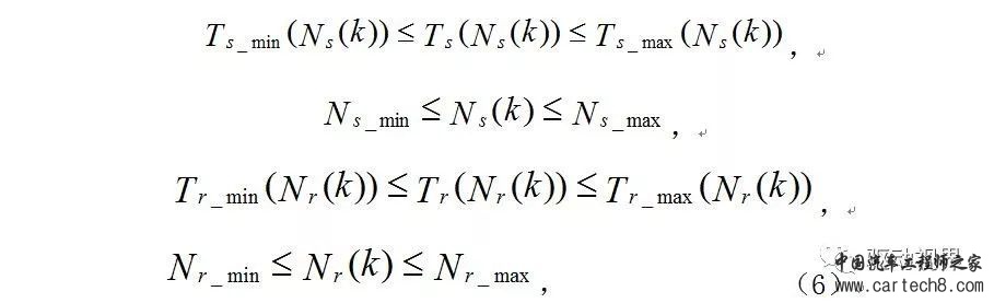 这里的Ts是主电机的输出转矩,Tr是辅助电机的输出转矩。除此之外,为了满足系统的特性,除了基本的约束,其它的约束也是需要的: