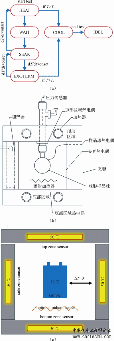 图1(c)为ARC的绝热测试原理。外壳温度始终保持与样品温度相等,则样品与外界就没有热传递。因此,通过内外温度差为零,人为制造绝热环境。