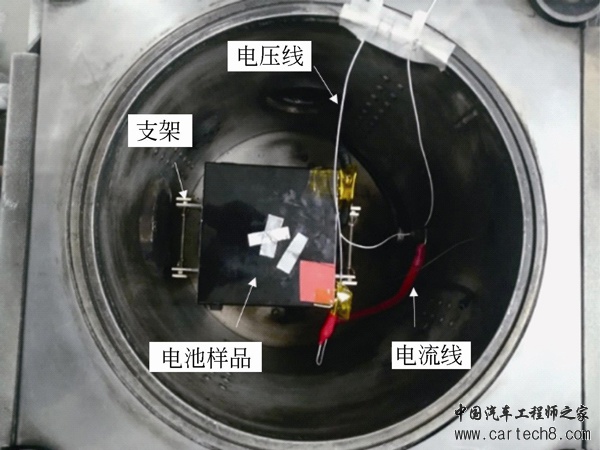 将电池与充放电设备连接好,放置于量热腔中(图8),检查连接回路无误后,启动加速量热仪。