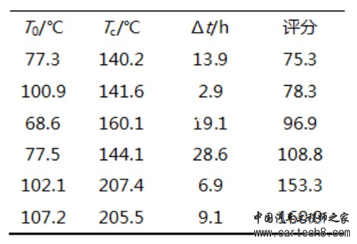 计分的原则是T0以50 ℃为零点,每增加1 ℃加1分;Tc以120 ℃为零点,每增加1 ℃加1分;Δt为30 min计1分。