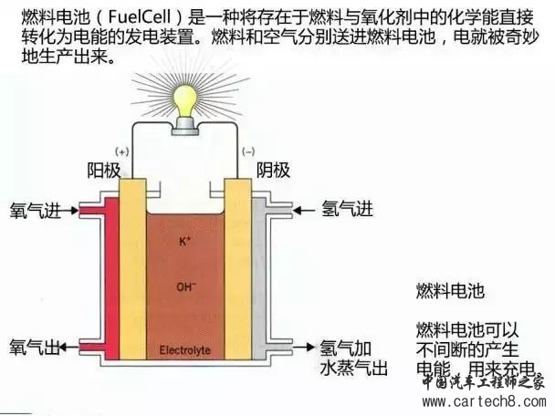 燃料电池(FuelCell)是一种将存在于燃料与氧化剂中的化学能直接转化为电能的发电装置。燃料和空气分别送进燃料电池,电就被奇妙地生产出来。它从外表上看有正负极和电解质等,像一个蓄电池,但实质上它不能“储电”而是一个“发电厂”。